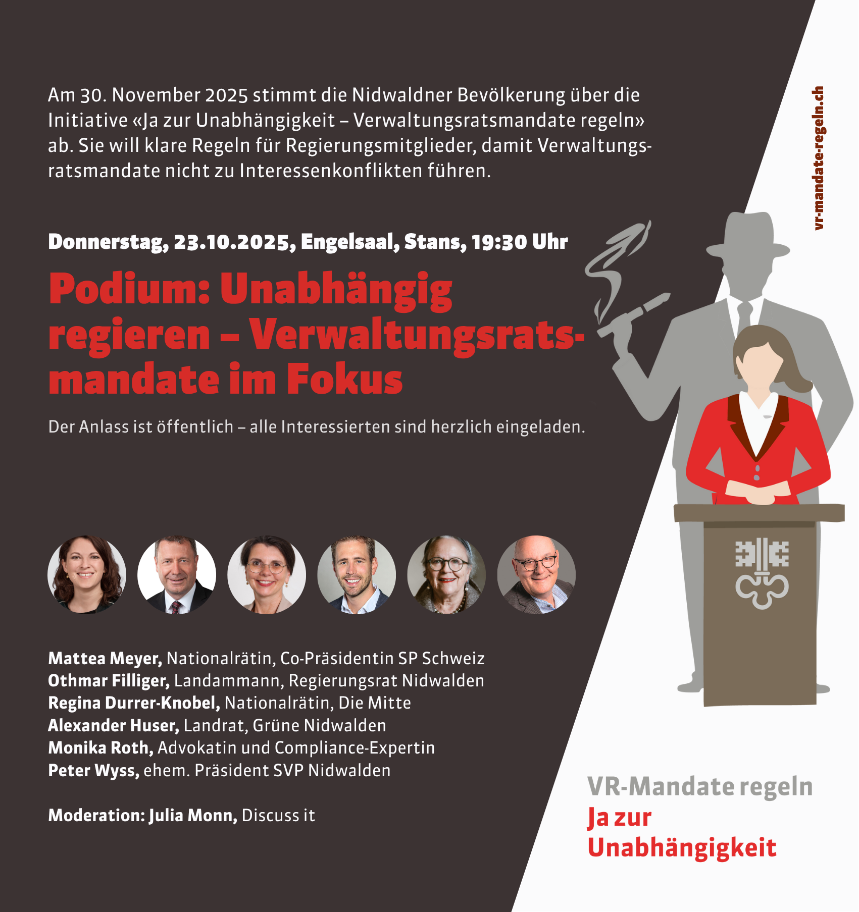 Initiative «Ja zur Transparenz – Verwaltungsratsmandate regeln»: Podiumsgespräch am Donnerstag, 23. Oktober 2025