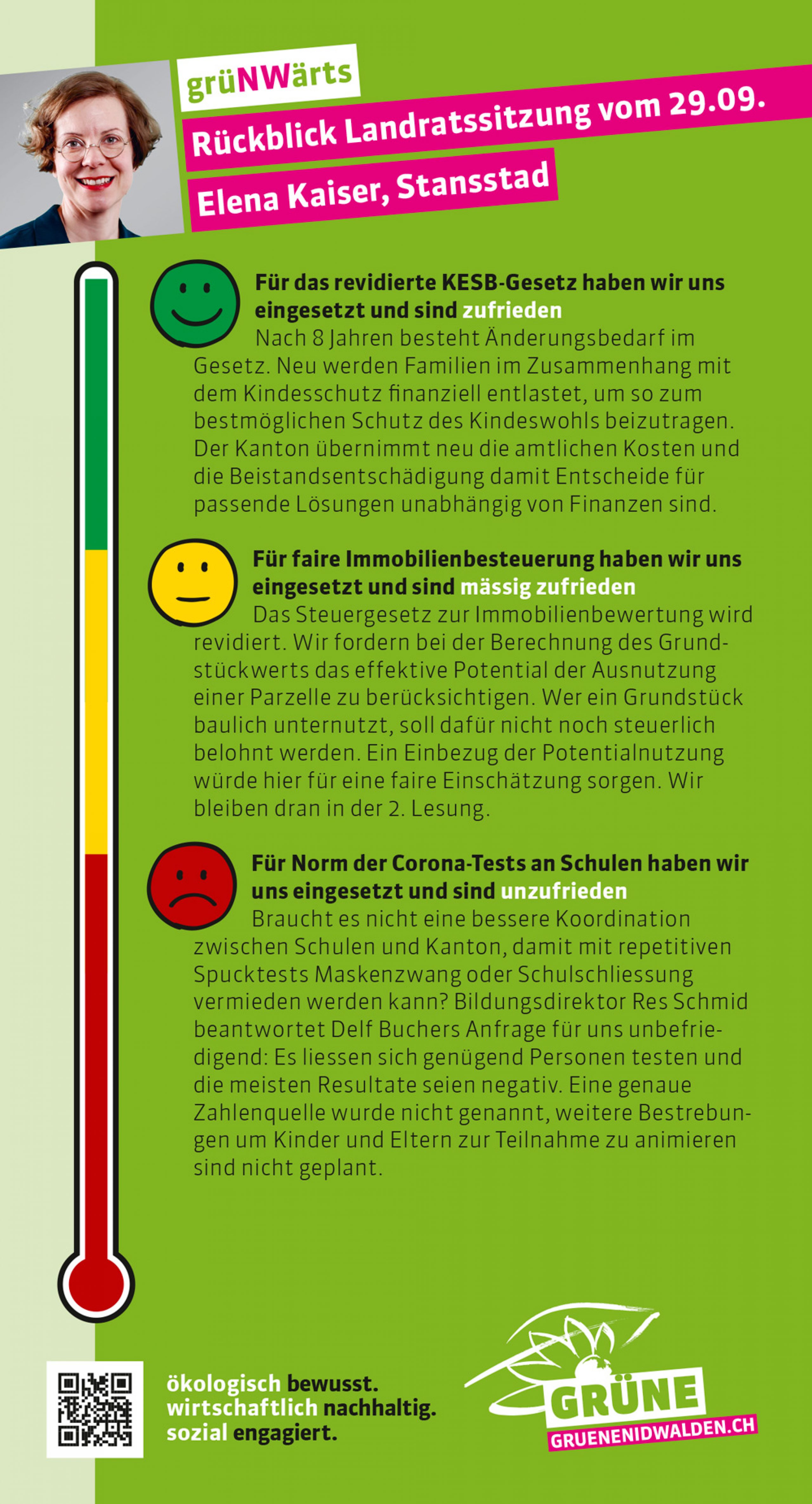 Der Landrat befasste sich in der vergangenen Sitzung am 29. September 2021 mit dem revidierten KESB Gesetz. Die Grünen setzen sich für mehr finanzielle Entlastung für Familien mit Kinderschutz ein und sind mit der Gesetzesrevision einverstanden.