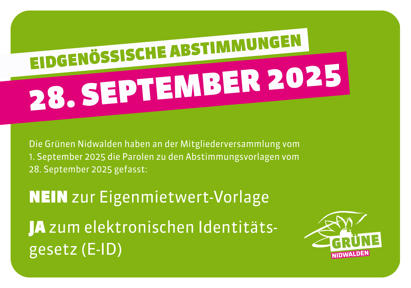Die Grünen Nidwalden sagen «Nein» zur Abschaffung des Eigenmietwerts und «Ja» zum E-ID-Gesetz