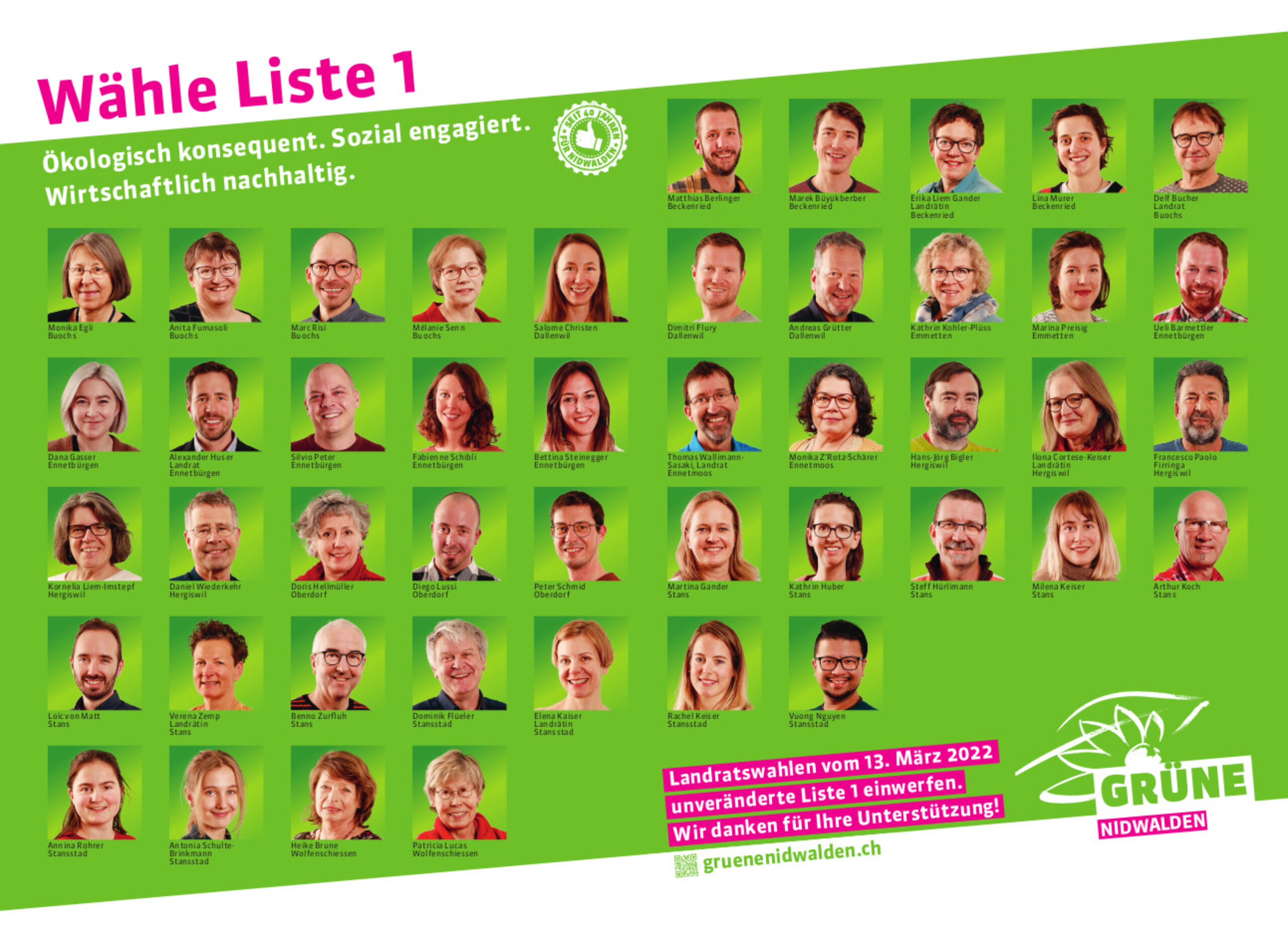 - Grüne Nidwalden, Liste 1, unverändert einlegen
